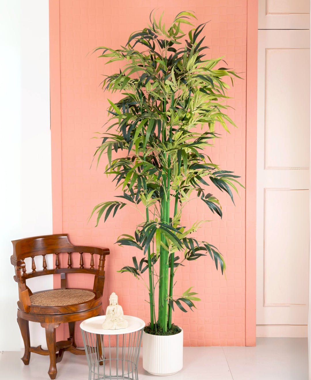 Bring Serenity And Sophistication Into Your Space With Our Tall Artificial Bamboo Plant, Designed To Mimic The Graceful Beauty Of Real Bamboo Without The Upkeep. With Its Lush Green Foliage And Slender Upright Stems, This Plant Adds A Refreshing Vertical Element To Any Interior Or Semi-Outdoor Setting.